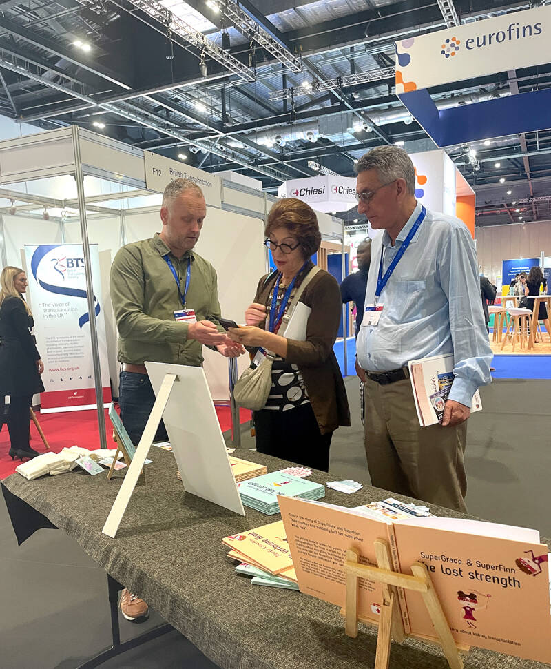 We werden door The European Society for Organ Transplantation uitgenodigd om naar Londen te komen en over onze boeken en memoryspel te vertellen in de commercial zone, tijdens het congres.
